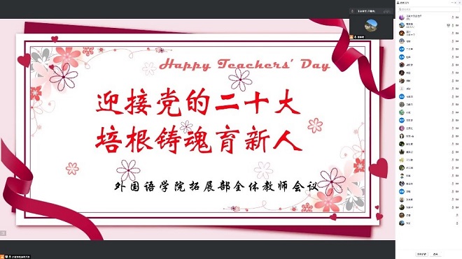 大学英语拓展部全体教师于9月8日下午2点,相聚云端,以 “迎接党的二十大,培根铸魂育新人”为主题,进行了立德树人研讨活动。色情网站