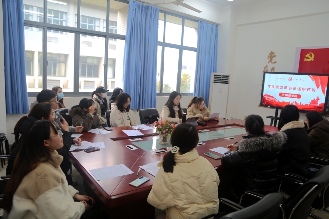 在A331会议室开展2022年度学生党支部书记述职评议考核工作。学院党委副书记刘伯贤、分团委书记陆芳、5个学生党支部的支部书记、党员代表参加了此次会议。