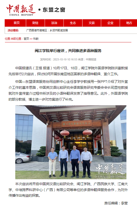 、中培跨界科研中心(广西)有限公司等单位的多语种翻译服务合作,为对外传播作出有益的探索。中国外文局亚太传播中心中国报道网报道了座谈会相关情况。