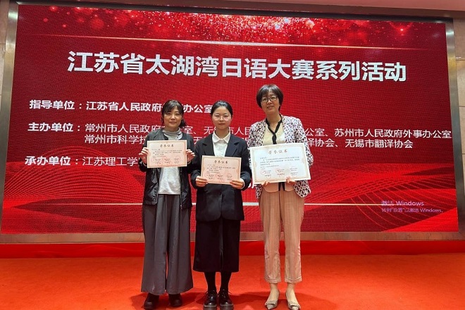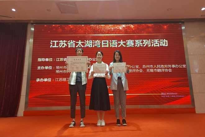 江苏省太湖湾十七届日语演讲比赛10月28日于常州江苏理工学院落下帷幕。本次大会由江苏省人民政府外事办公室指导,由无锡市人民政府外事办公室、常州市人民政府外事办公室、苏州市人民政府外事办公室、无锡市教育局、无锡市翻译协会、常州市翻译协会、常州市科学技术协会等联合主办。