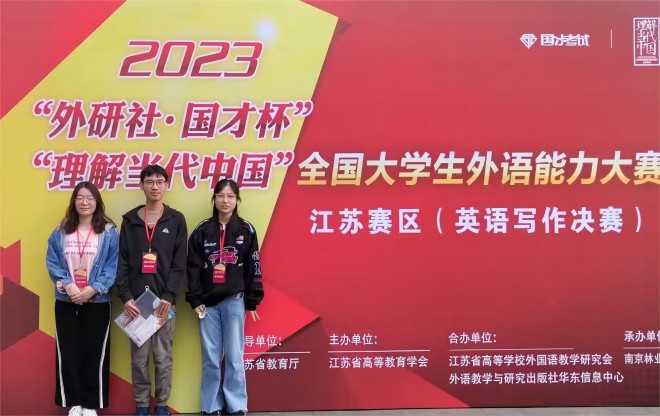 10月28日,2023“外研社•国才杯”“理解当代中国”外语能力大赛(江苏省赛)英语组写作决赛和阅读决赛在南京林业大学举行,来自全省各大本科院校281名选手参加了此次角逐。我校通过校赛选出七名选手参加省赛,写作与阅读团队在赛前进行集训与精心指导,七位同学分别荣获省赛一等奖一项,二等奖一项和三等奖五项的佳绩。其中,来自生工学院荣获省赛一等奖的廖超同学将于12月代表我校前往北京参加写作大赛国赛,届时将与全国晋级选手同台竞技。