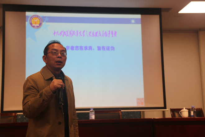首场讲坛的主讲人是国防科技大学教授、博士生导师方成,他讲座的题目为“十九世纪美国改革文学之思想维度与叙事艺术”,讲座主要包括三个基本概念、两大核心问题、五项改革思想与实践高度、十大类改革叙事艺术,方教授强调当代文学批评理论就是当代西方文学改革批评理论。此外,他还对到场的所有老师和同学提出了“学者志在求真,旨在证伪”的宝贵建议。