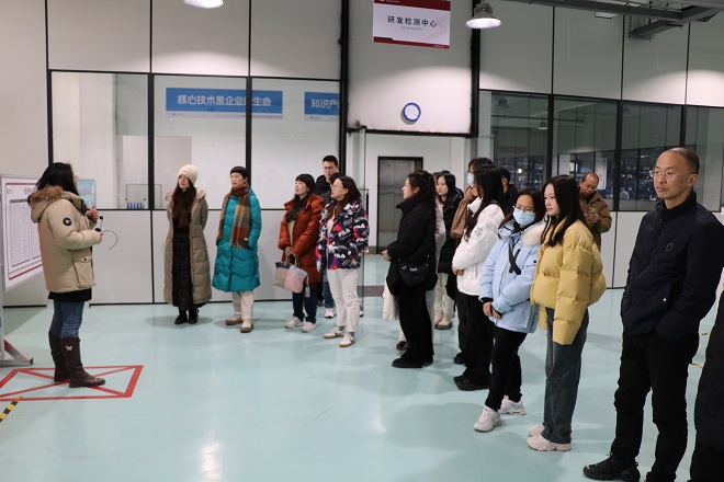第二站,学院师生来到了江苏赛迪乐科技集团。该企业是一家专注于手动、电动、光伏电控内置遮阳百叶中空玻璃研发与制造的国家高新技术企业、“专精特新”小巨人企业,在海外建材市场占有可观的市场份额。李荣华充分肯定了赛迪乐先进的设计研发、生产制造和检验检测,详细了解公司的人才需求及招聘计划。赛迪乐方也表示,希望未来可以与色情网站
