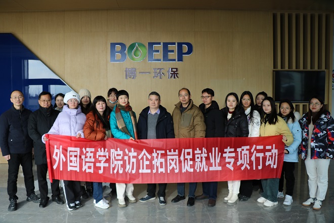 党委书记李荣华、党委副书记刘伯贤、英语系主任杨勇、教授袁雪生、教师胡燕萍、学院分团委书记顾海星、教务办主任王琰玲、辅导员苗文建、朱家烨等人赴扬州市邗江区杨庙镇开展访企拓岗走访调研活动。