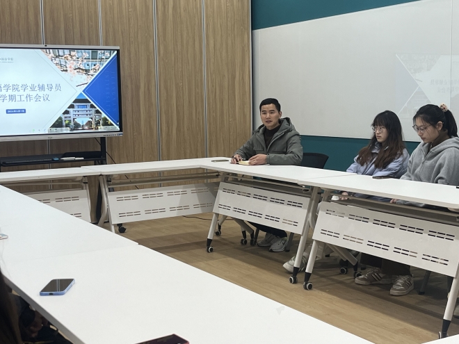于3月7日在南区一站式社区召开新学期学业辅导员工作会议。会议由辅导员苗文建主持,学院学促部同学以及26位学业辅导员参会。