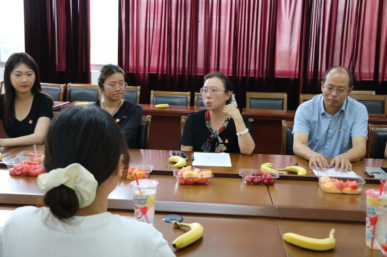 分团委书记顾海星与毕业生代表共抒情谊、共话成长。座谈会由顾海星主持。