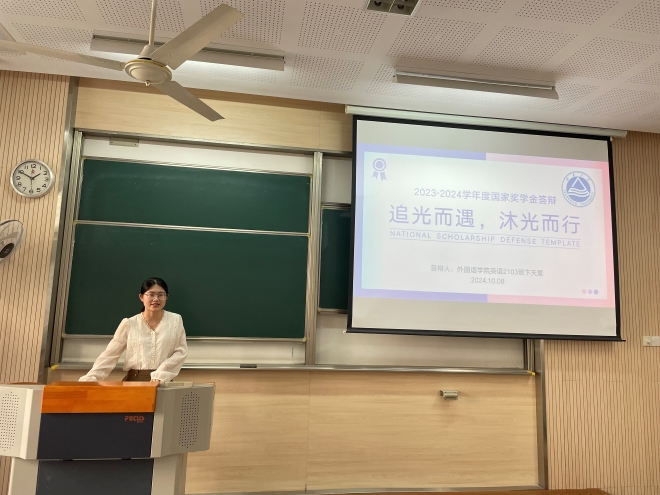 会议伊始,主持人宣读了学校的相关文件和通知,介绍了学院本科生国家奖学金评审要求,明晰了此次国家奖学金答辩的答辩规则。经过前期个人申报、学院审核初评,共有10名学生参与此次答辩,答辩者按照抽签顺序依次上台,并就思想品德、学习成绩、学科竞赛、社会实践等方面进行答辩展示,充分地彰显了外院优秀学子刻苦努力、勤学奋进、勇于担当的精神风貌。整场答辩会气氛热烈、井然有序,在场观摩学习的学生纷纷受到答辩人的优秀事迹所鼓舞,并给予每一位答辩人热烈的掌声。国奖评选答辩会不仅是学生一次展示的机会,更是一次难得的学习机会。