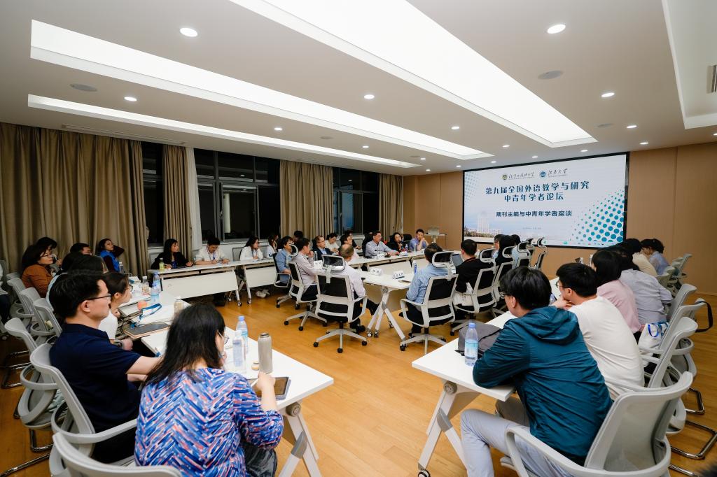 期刊主编座谈会成为青年学者关注的焦点。王文斌教授、束定芳教授、冉永平教授、杨平教授、张晓鹏教授等多位国内顶级期刊主编团现场把脉学术论文写作与投稿。主编们建议青年学者关注“一带一路”语言服务、应急语言能力建设、语言智能伦理等新兴领域,构建具有中国特色的研究范式。参会的中青年学者代表们与期刊主编积极互动,讨论热烈,现场氛围轻松充满学术活力。