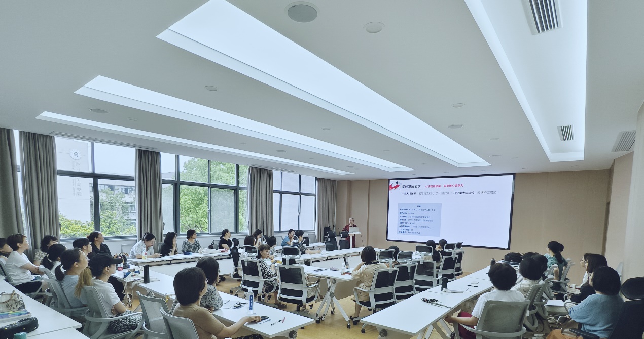 李荣华书记作总结发言。她指出,学院在发展外语学科方面具备独特优势,教师需响应学生成长与学校发展需求,着力提升数智教学能力,把握机遇,与学校同频共振,切实担当起外语育人的使命。