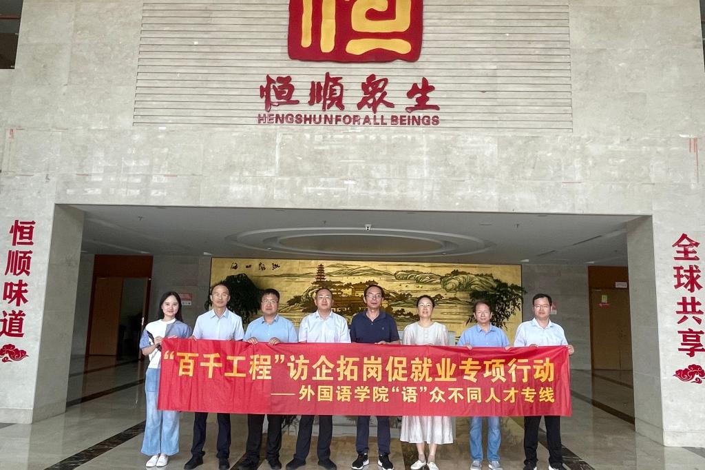 赴江苏恒顺醋业股份有限公司开展访企拓岗促就业专项行动。学院院长方文开,党委副书记、副院长季王飞,副院长谢竞贤,副院长杨勇,MTI主任李学宁,辅导员朱家烨参加本次走访调研。