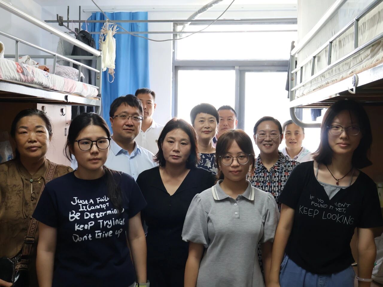 党委书记李荣华,党委副书记、副院长季王飞,辅导员查博奕及班主任、副班主任走访了忙碌收拾后的新生宿舍,怀揣着热情与关怀,进行了慰问并积极解答了新同学们的疑惑,打消了他们的疑虑和担忧。同时分享了住宿生活的经验技巧,帮助大家更好地适应住宿环境,让新生们更加从容地面对大学生活。