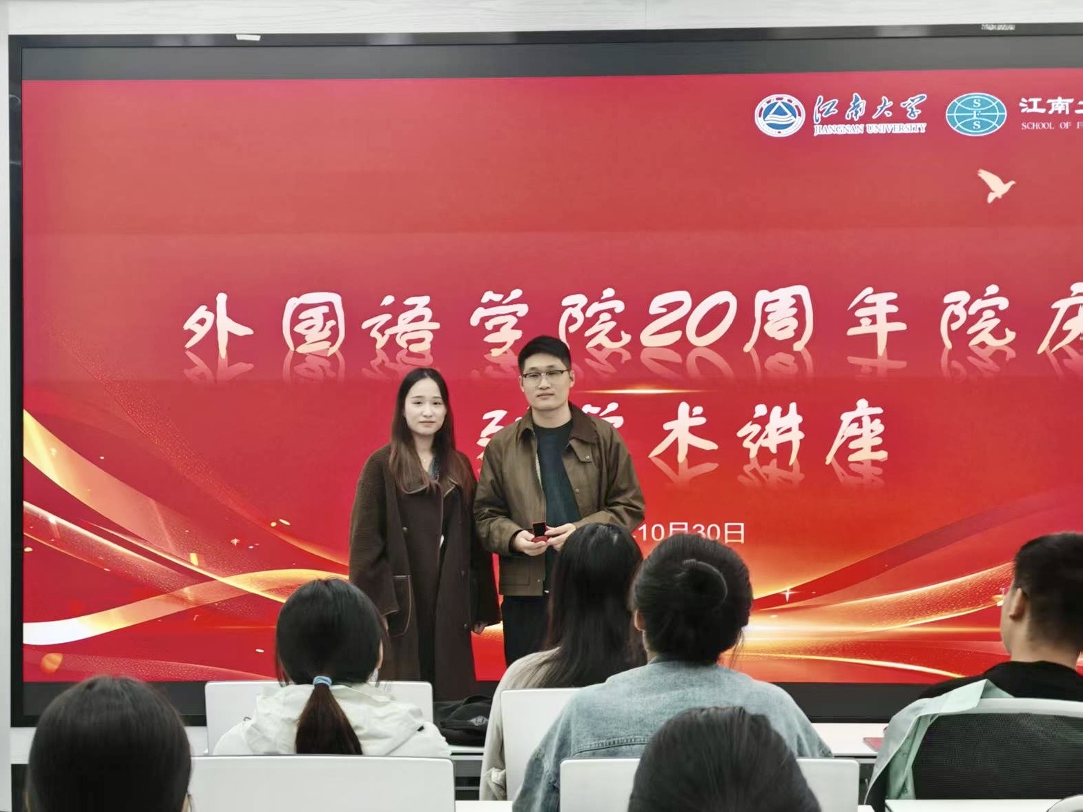 活动尾声,研究生学生代表朱紫菱向宋宇博士赠送了纪念品,以表达全体师生的诚挚感谢。整场讲座内容翔实、情感真挚,不仅为在场学子展现了宝贵的学术经验,更激发了大家对自我学术道路的深入思考。