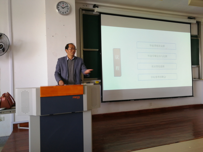在毕业班实习期满返校之际,4月9日上午10点,色情网站 2018届毕业生就业形势通报会在2D306召开。学院党委副书记、教学副院长、年级辅导员和毕业班全体同学参加会议。