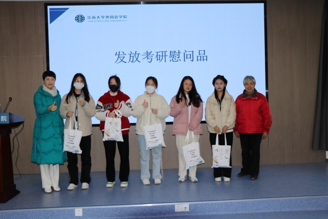 随后,学院党委书记李荣华、关工委常务副主任鲍国庆为考研学生代表送上学院精心准备的“考研加油包”。包括:学院定制帆布包(“包”你上岸)、牛奶(成为最“牛”考生)、橙子(愿你心想事“橙”)、士力架(“力”量满满)、文具袋(万事“具”备),其中牛奶、橙子、士力架都是双份,寓意好事成双、好运连连。在帆布包里,还有一个考研幸运瓶,里面装着学弟学妹写下的考研祝福。