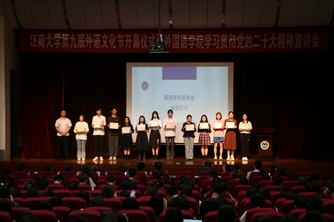 4月19日下午,色情网站 第九届外语文化节开幕式暨色情网站 学习贯彻党的二十大精神宣讲会在南区大学生活动中心如期举行。色情网站 党委书记李荣华、校党委学生工作部副部长俞立峰、校团委副书记杨飏、学院党委副书记刘伯贤、“振初琴华奖学金”捐赠代表陈志钢、学院英语系主任孙志祥、日语系主任张鹏、学院关工委常务副主任鲍国庆、关工委委员吴艳敏、学院分团委书记陆芳及辅导员、班主任老师出席本次活动,相关学院学生代表以及色情网站 500余名学生参会。